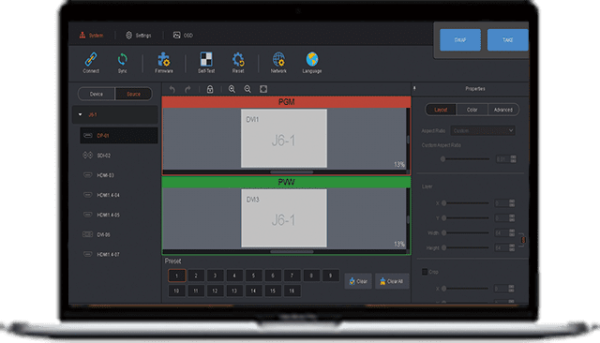 - Support for real-time monitoring with PVW and PGM. Support fade in & fade out switching effects.