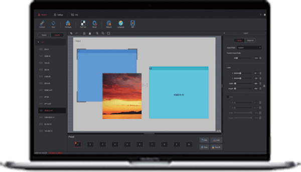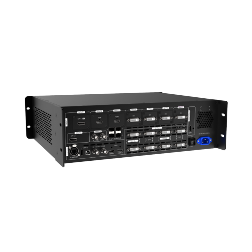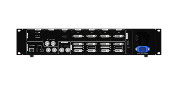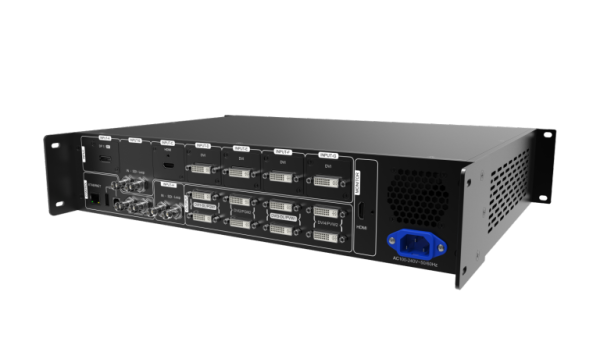 - 4 Main outputs, with support for 4K×2K processing. Can realize larger size pixel to pixel display without scaling using media server.