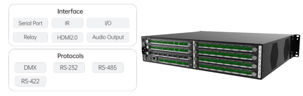 Supports interfaces including serial ports, IR, I/O, Relay, HDMI 2.0, audio output and more.